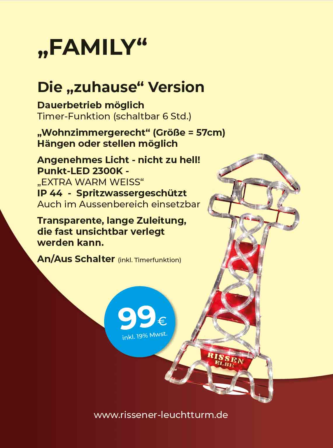 Unser Leuchtturm „FAMILY“ kostet 99,00 Euro (lieferbar erst ab 15. Dezember!)